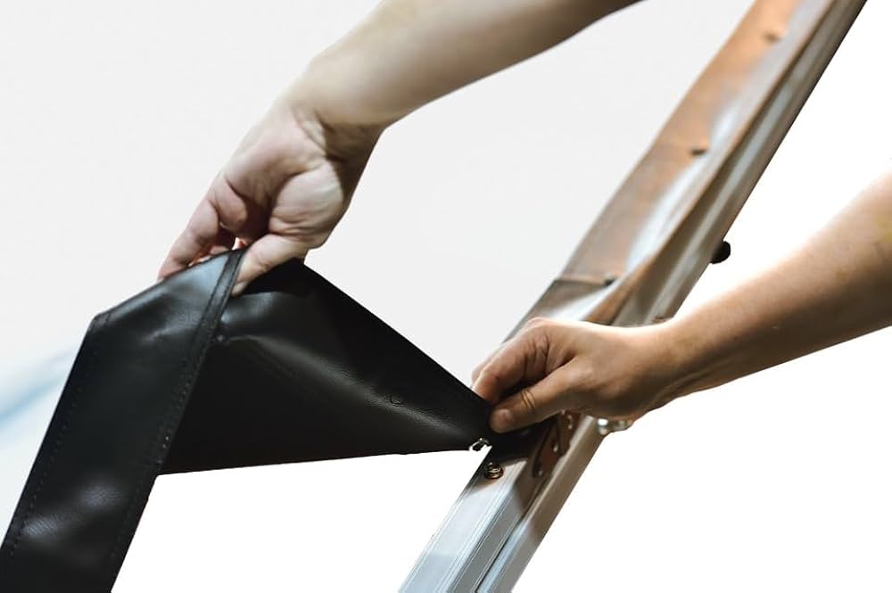 La toile en PVC est conçue pour se tendre automatiquement lorsqu’elle est fixée au cadre.